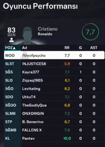| GK | 10.0 |